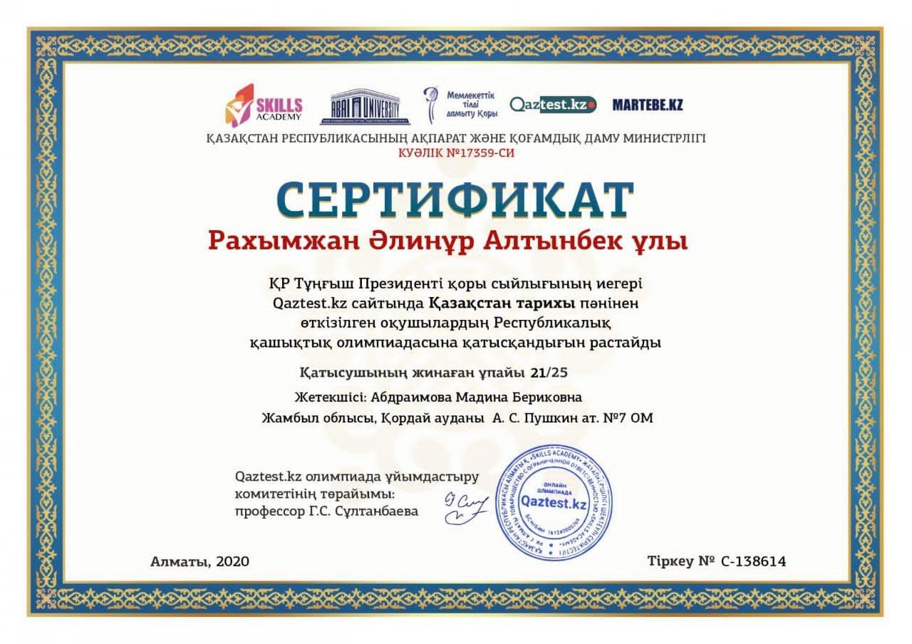 Достижение учителей и учеников » СШ №7 им.Пушкина
